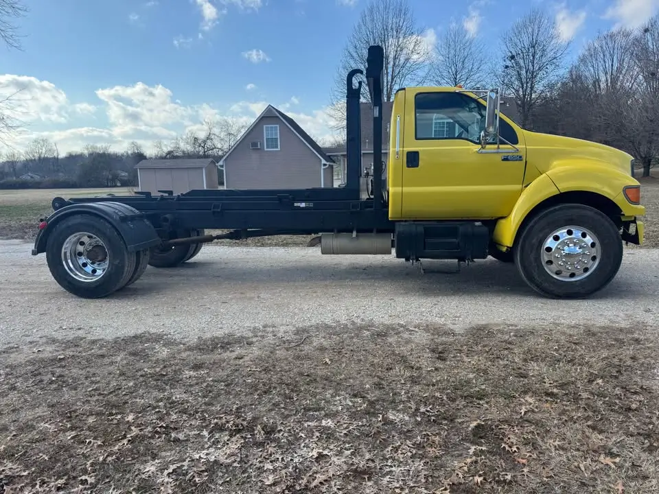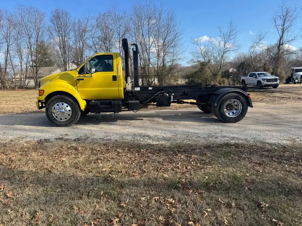 2000 Ford F650 Cat 6 Spd standard 156K miles spring ride 54"hook lift with tarp $37,500 delivered to you.