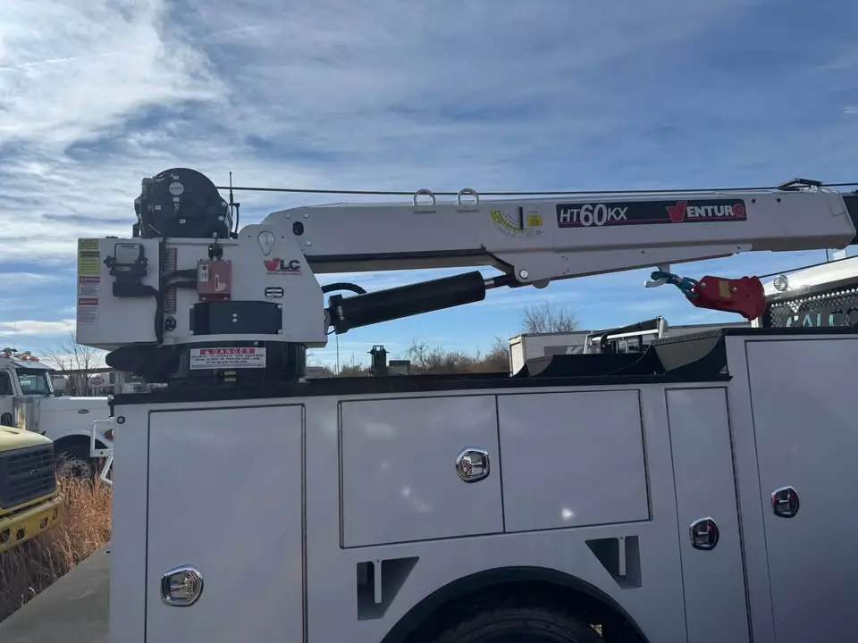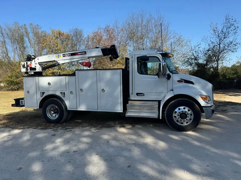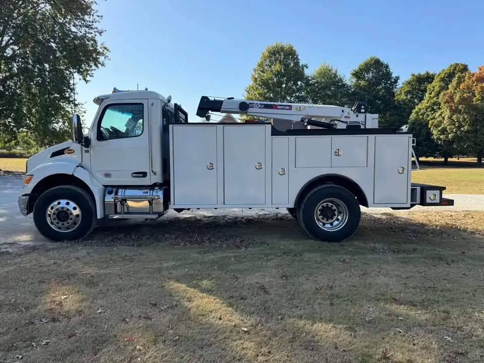 2025 Peterbilt 537 Cummins 300HP Allison automatic power windows locks and mirrors air ride 14’ Falcon crane service body Venturo HT60KX crane with full remote controls also included VanAir Air-N-Arc I-300H with Leads Electrode Ground Jump Cable $243,500 delivered to you.
